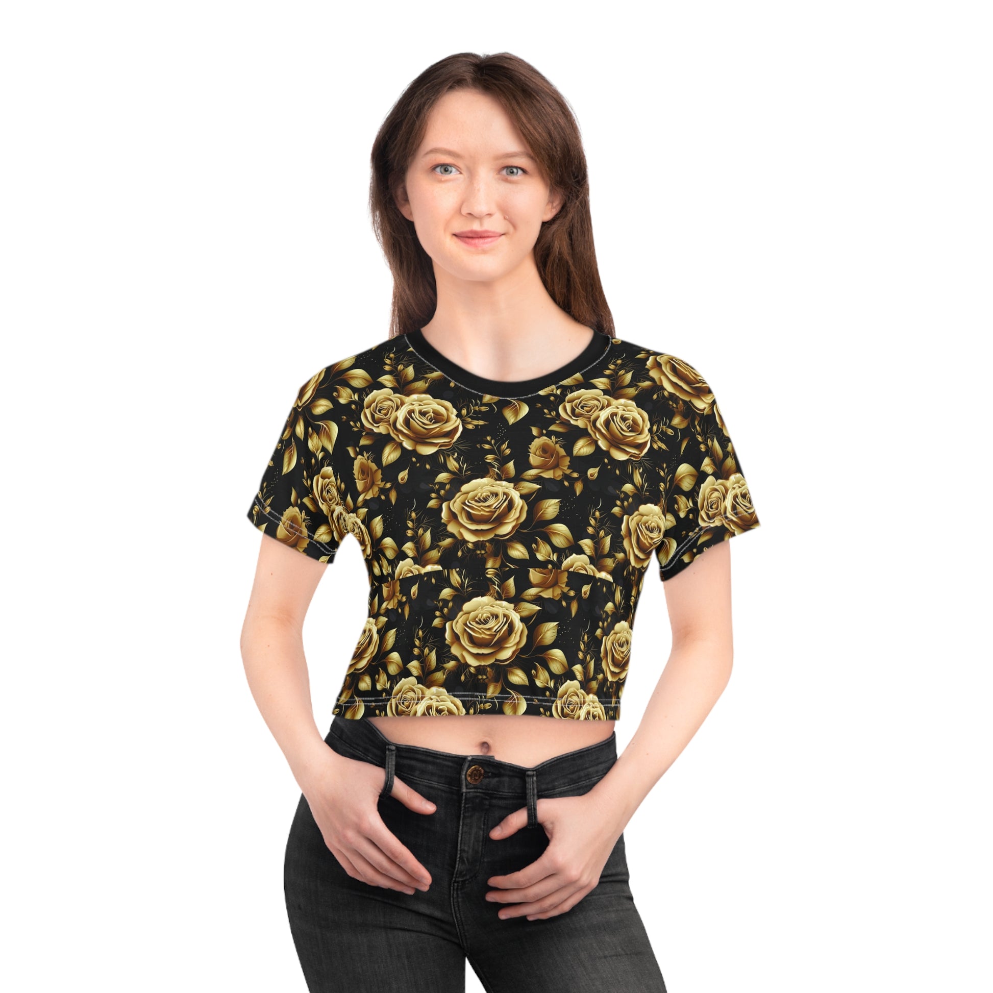 This personalized crop top has both comfort and style in spades. Add whimsical patterns, feel-good designs and create a unique AOP crop tee that’s perfect for everyday wear. Made 100% with silky soft polyester that is both lightweight and breathable.