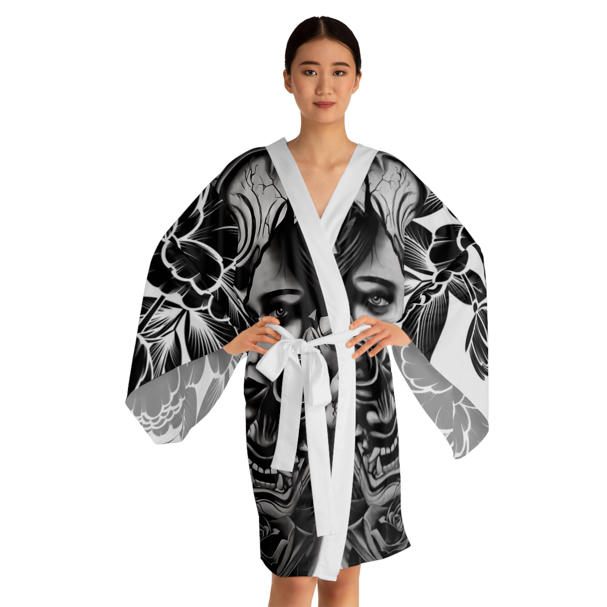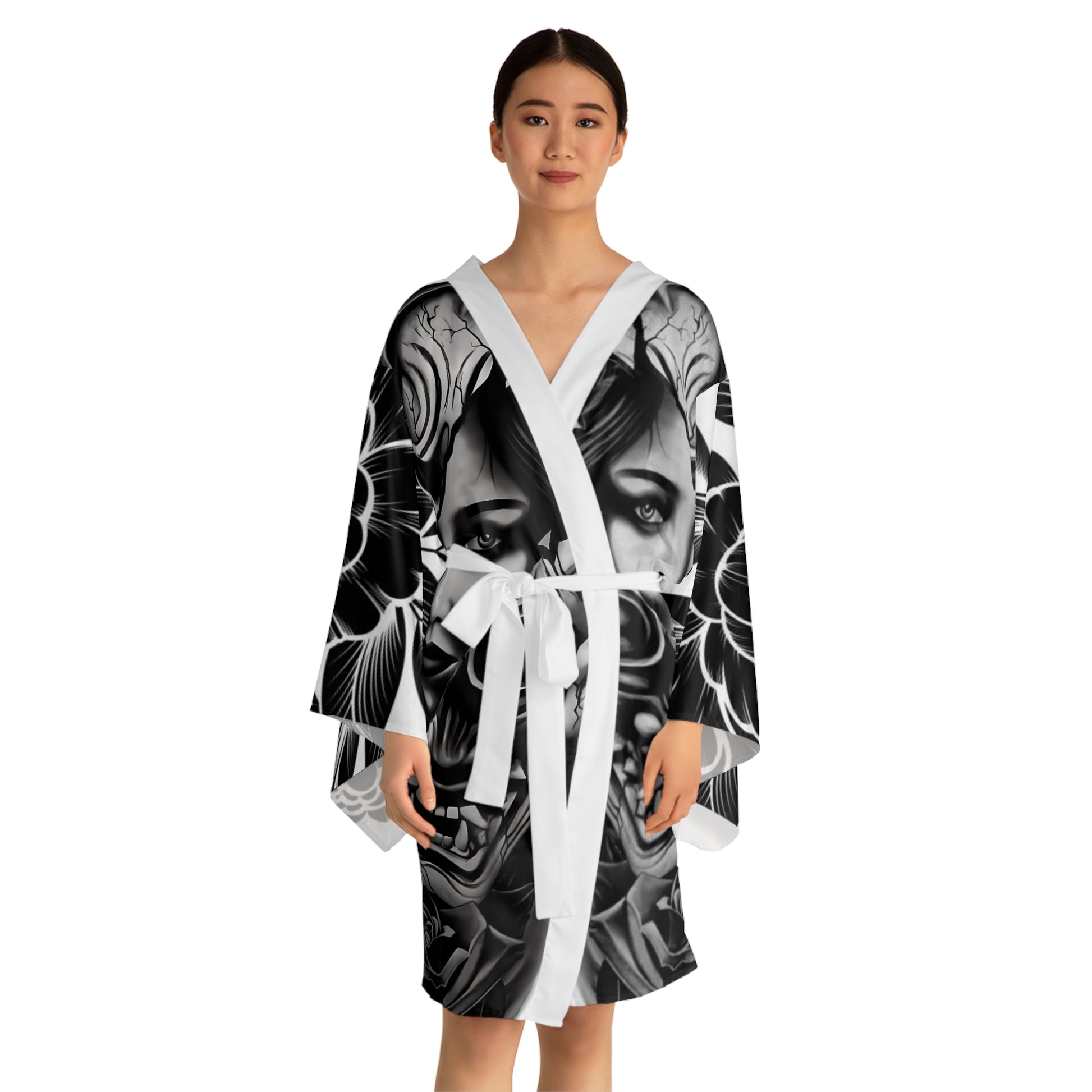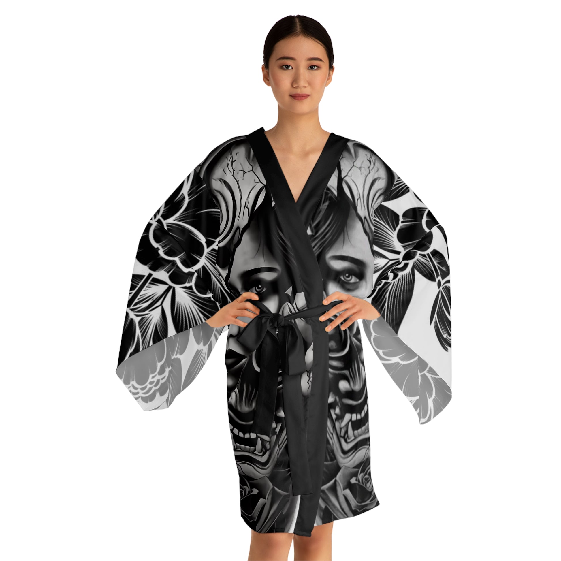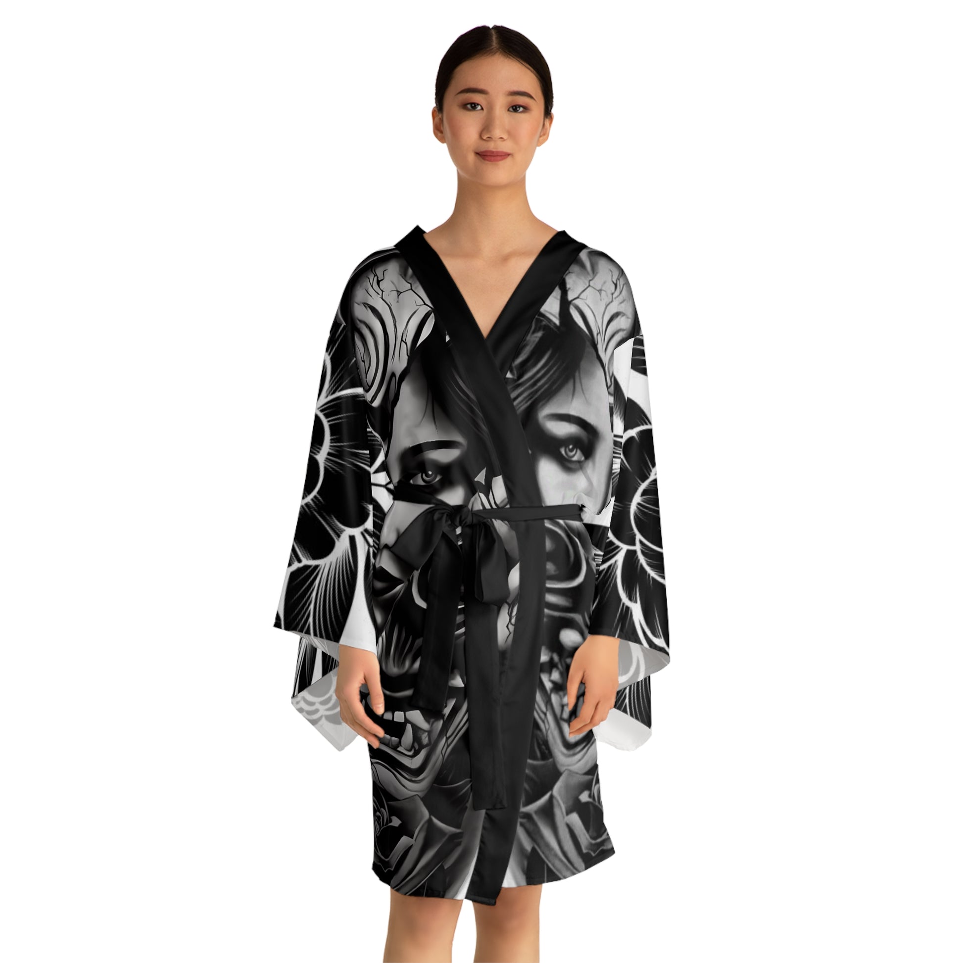 Whether it’s lounging at home or making a stylish appearance, these kimono-style robes are as beautiful as they are cozy. With a figure-flattering shape, this chic mid-length robe features the signature flowing bell sleeves and a belt, making it an absolute delight for Japanese style enthusiasts. Each kimono is 100% made with Polyester for that smooth & silky feel.